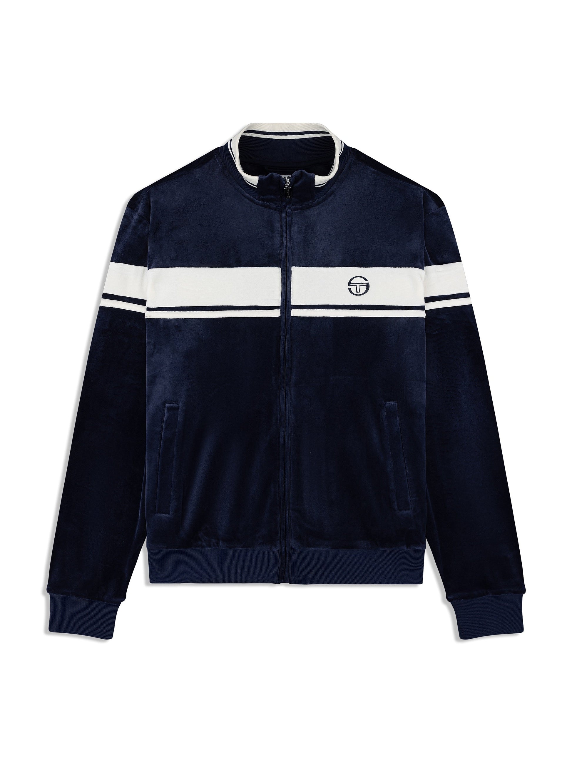 A premium take on a Tacchini classic, the Damarindo Velour Track Jacket is crafted from plush velour for a luxurious feel. Featuring our renowned double stripe at the chest, sleeves, and collar, this elevated full-zip track jacket is complete with spacious handwarmer pockets, rib-knit trims, and our iconic 'ST' monogram logo embroidered at the left chest.