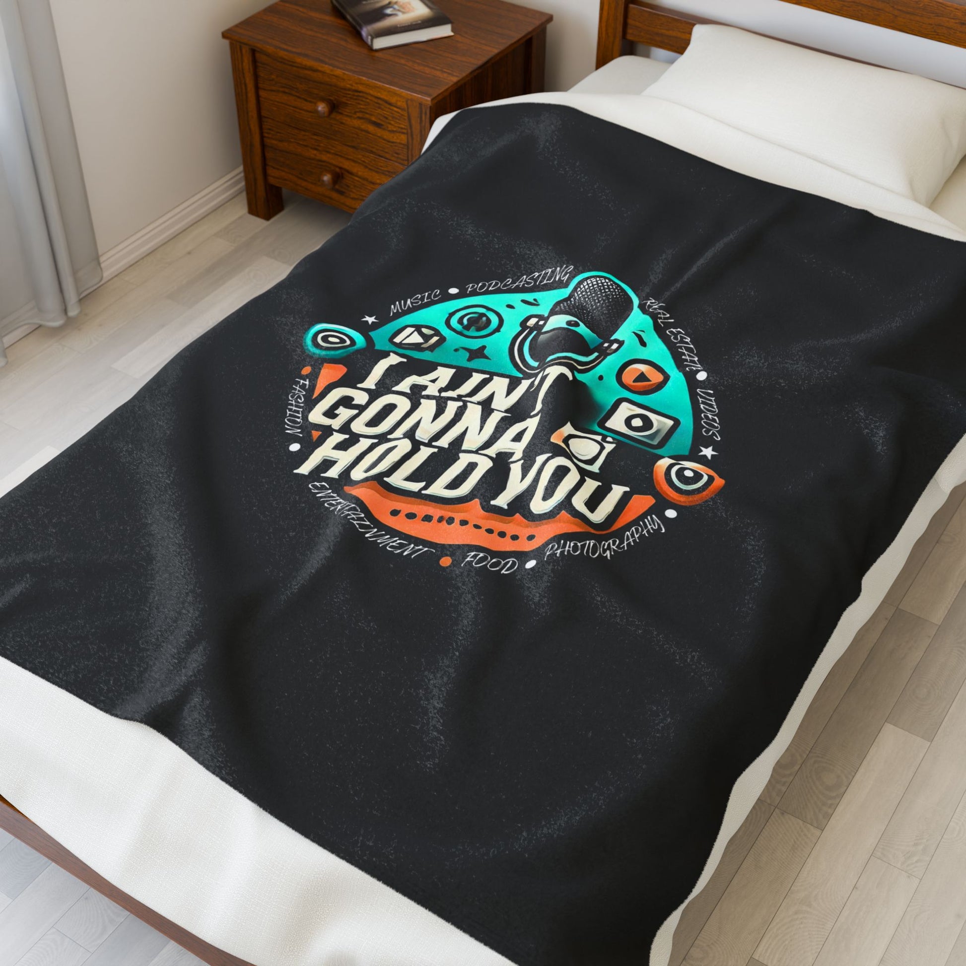 Microphone Theme Velveteen Plush Blanket | Cozy Decor, Gift for Musicians, Music Lovers, Home Essentials, Fun Bedroom Accent