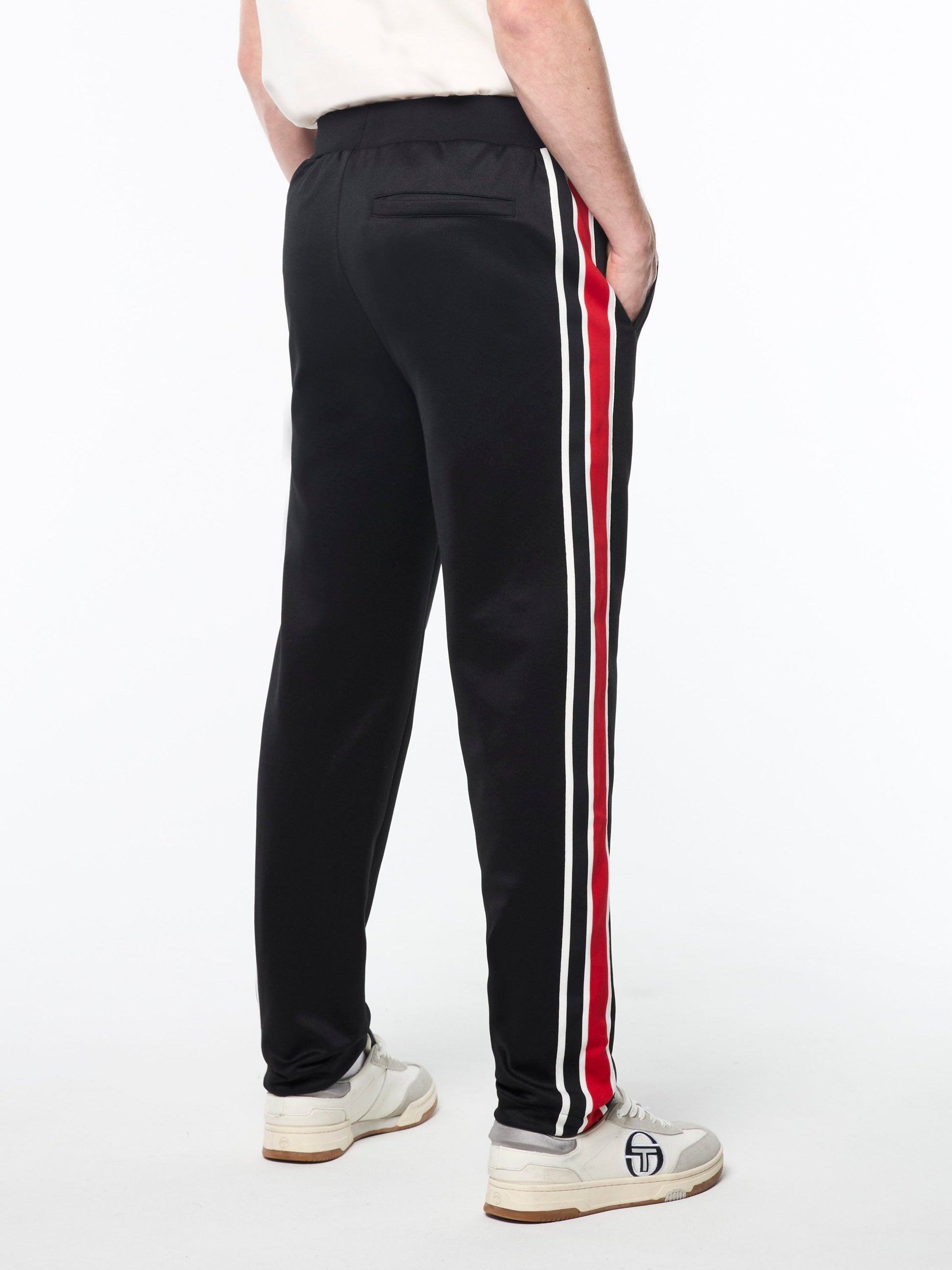 An elevated take on retro sportswear, the Monte Track Pant is made of soft poly-cotton and features our iconic 'ST' monogram logo in an embroidered patch with terry towel detailing at the left thigh. A Tacchini fan favorite, these premium pants are complete with pleated seam detailing and striped taping down the legs. Pair with the Monte Track Jacket for the full fit. (Sold separately)